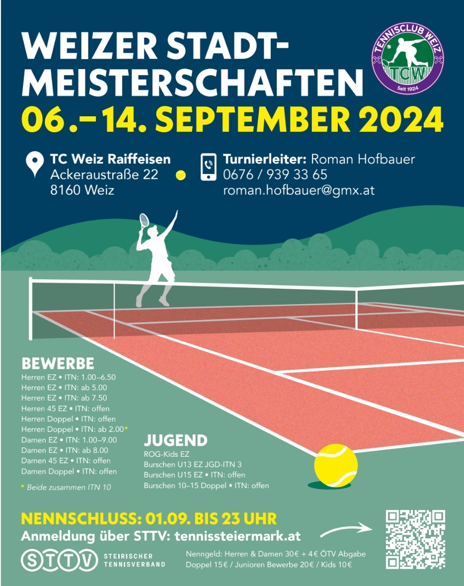 Ab sofort anmelden für die Weizer Stadtmeisterschaften anlässlich 100 Jahre TC Weiz.