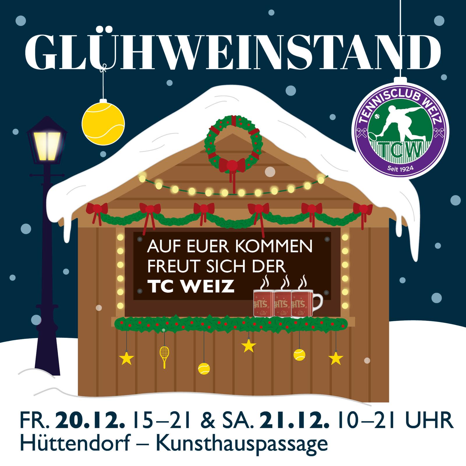 Einladung zum TC Weiz Glühweinstand am Freitag 20.12 von 15 bis 21 Uhr und Samstag 21.12 von 10 bis 21 Uhr